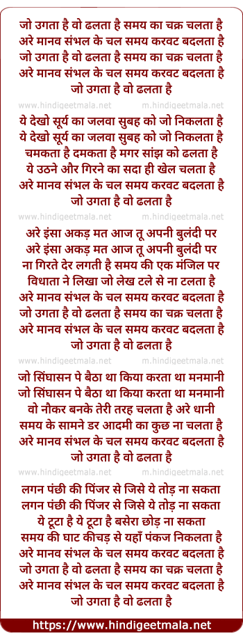Lyrics of Jo Ugta Hai Wo Dhalta Hai - जो उगता है वो ढलता है