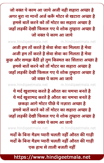 Lyrics of Jo Waqt Pe Kaam Aa Jaye Aji Wohi Sahara Acha Hai - जो वक्त पे काम आ जाये अजी वही सहारा अच्छा है