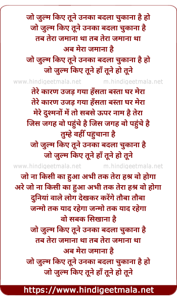 Lyrics of Jo Zulm Kiye Tune Unka Badla Chukana Hai - जो जुल्म किए तूने उनका बदला चुकाना है