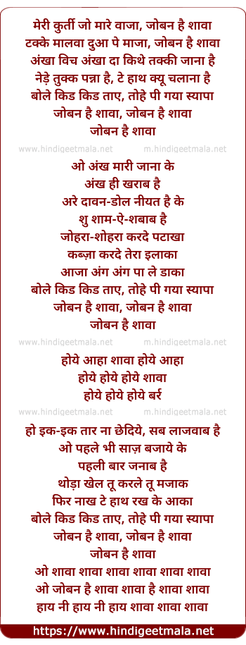 Lyrics of Joban Hai Shawa - जोबन है शावा