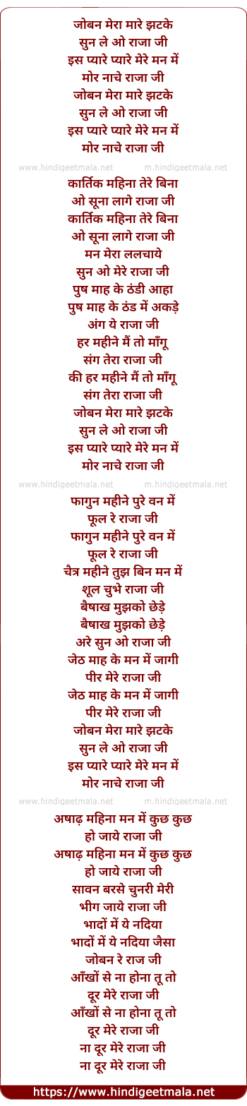 Lyrics of Joban Mera Maare Jhatke - जोबन मेरा मारे झटके