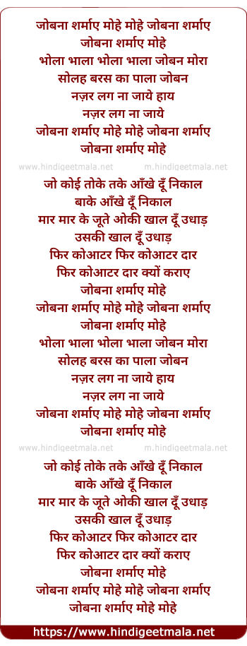 Lyrics of Joban Sharmaye - जोबना शर्माए