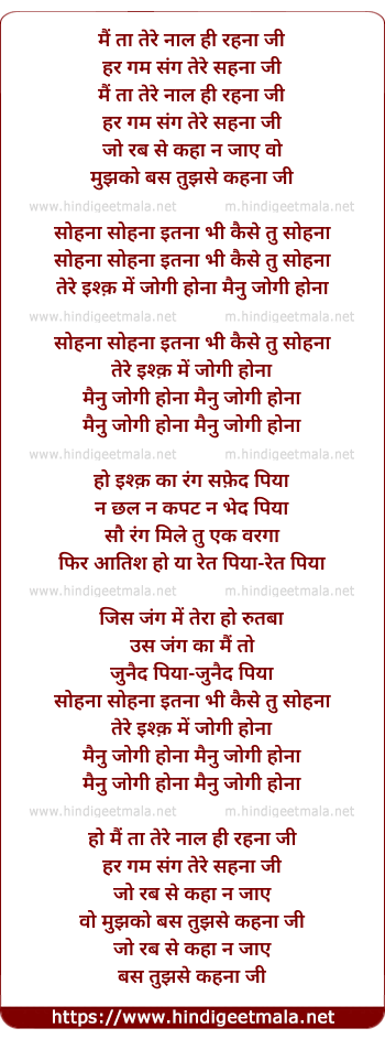 mai taa tere naal hi rehna ji har gum sang tere sehna ji