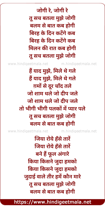 Lyrics of Jogi Re Tu Sach Batla Mujhe - जोगी रे तू सच बताला मुझे
