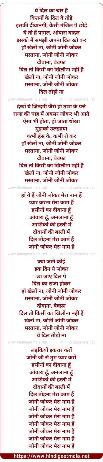 Lyrics of Johny Joker - ये दिल का चोर हैं