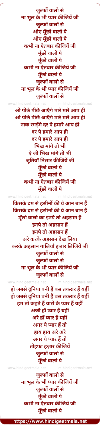 Lyrics of Jolfon Walon Se - जुल्फों वालो से