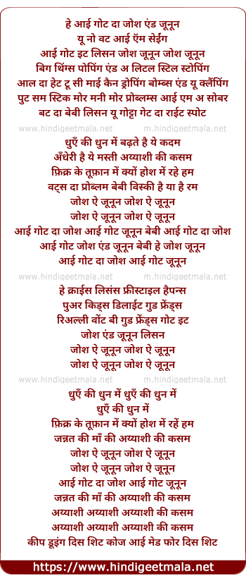 Poetic Translation - Lyrics of Josh And Junoonn - जोश एंड जूनून