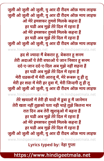 Lyrics of Julie You Are The Rhythm Of My Life - जुली यु आर दी रीदम ऑफ़ माय लाइफ