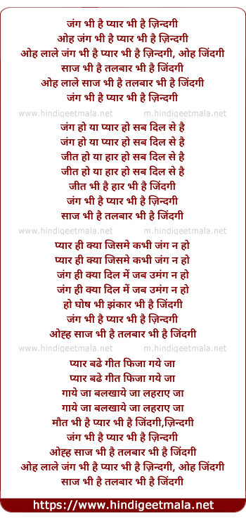 Lyrics of Jung Bhi Hai Pyar Bhi Hai Zindagi