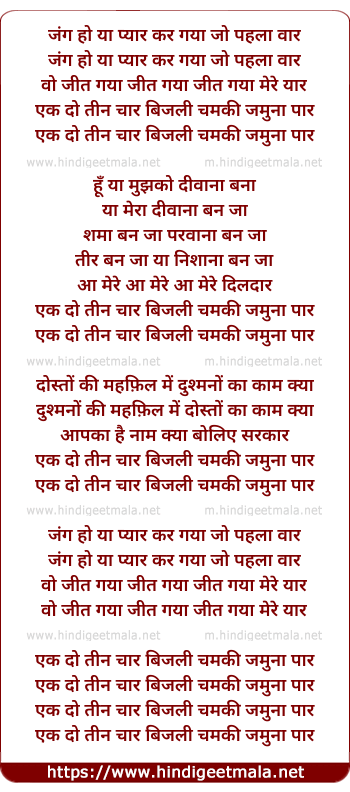 Lyrics of Jung Ho Ya Pyar Kar Gaya Jo - जंग हो या प्यार कर गया जो