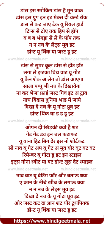 Poetic Translation - Lyrics of Just Do It - डांस इस स्मोकिंग डांस हैं मून वाक