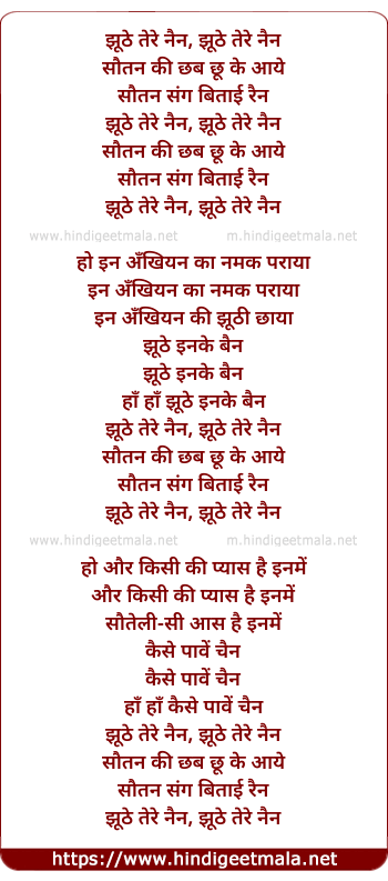 Lyrics of Juthe Tere Nain - झूठे तेरे नैन, झूठे तेरे नैन