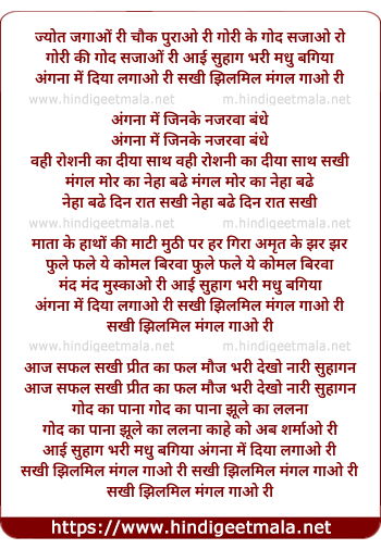 Lyrics of Jyot Jagao Ro Chauk Purao Ri Gori Ke God Sajao Ri - ज्योत जगाओ री चौक पुराओ री गोरी के गोद सजाओ रो
