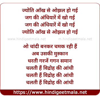Lyrics of Jyoti Aankh Se Ojhal Ho Gayi - ज्योति आँख से ओझल हो गई