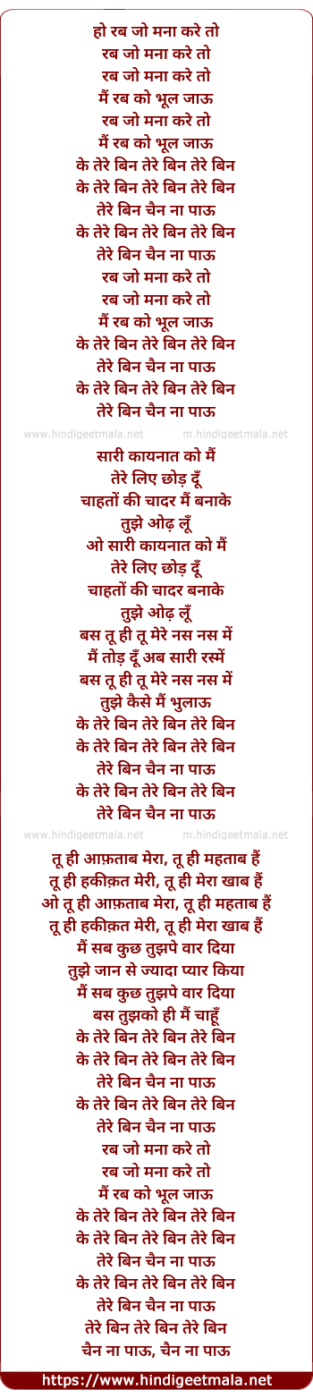 Lyrics of K Tere Bin Chain Na - हो रब जो मना करे तो