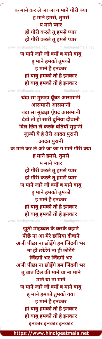 Lyrics of Ka Mane Kar Le Ja Ja Ga Mane Gori - का माने कर ले जा जा गा माने गौरी