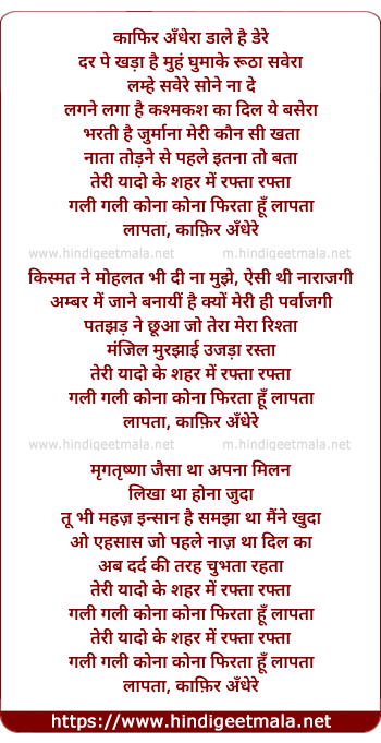 Lyrics of Kafir Andhere Dale Hai Dere Dar Pe Khada Hai - kafir andhere dale hai dere dar pe khada hai