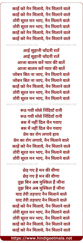 Lyrics of Kaahe Ko Nain Milaye - काहें को नैन मिलाये, नैन मिलाने वाले