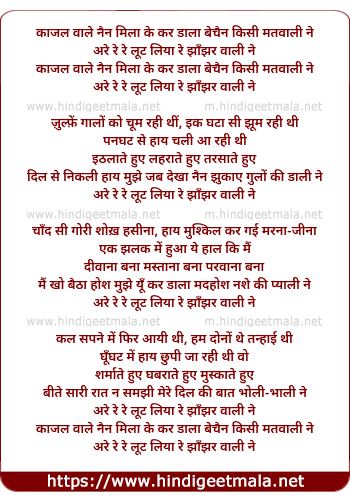 Lyrics of Kaajal Vaale Nain Milaa Ke Kar, Are Re Re Lut Liyaa Re - काजल वाले नैन मिला के कर, अरे रे रे लूट लिया रे