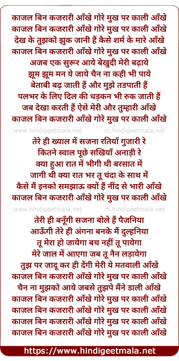 Lyrics of Kaajar Bin Kajrari - काजल बिन कजरारी आँखे गोरे मुख पर काली आँखे