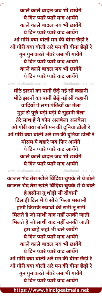 Lyrics of Kaale Kaale Baadal - काले काले बादल
