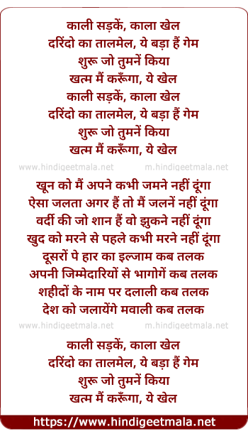 Lyrics of Kaalee Sadake, Kaala Khel - काली सड़कें, काला खेल