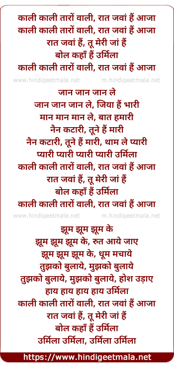 Lyrics of Kaali Kaali Taaro Wali Raat Jawan Hai - काली काली तारों वाली रात जवां हैं