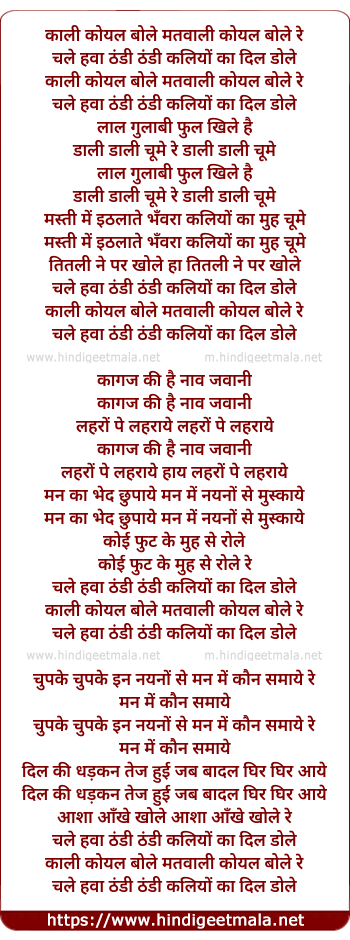 Lyrics of Kaali Koyal Bole - काली कोयल बोले