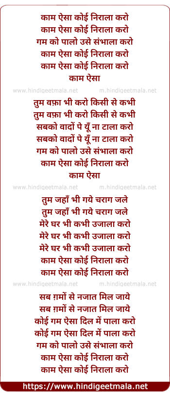 Lyrics of Kaam Aisa - काम ऐसा कोई निराला करो