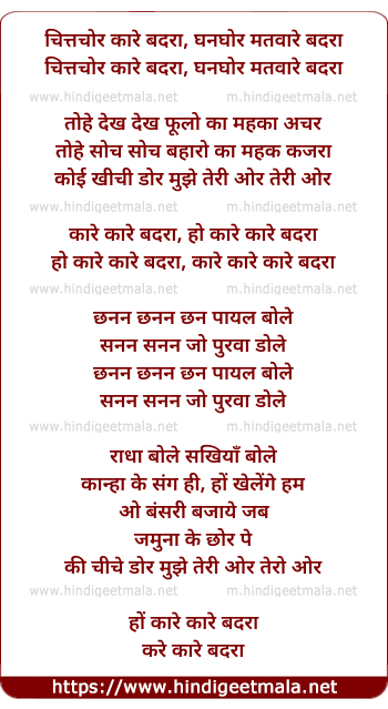 Lyrics of Kaare Kaare Badra - 1 - कारे कारे बदरा