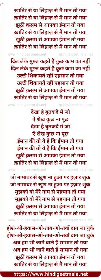 Lyrics of Kaatir Se Yaa Lihaaz Se Main Maan To Gayaa - ख़ातिर से या लिहाज़ से मैं मान तो गया