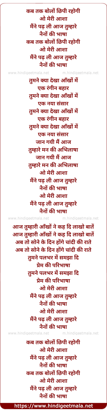 Lyrics of Kab Tak Bolo Chipi Rahogi - कब तक बोलों छिपी रहोगी