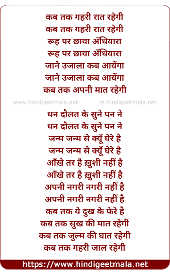 Lyrics of Kab Tak Gahri Raat Rahegi - कब तक गहरी रात रहेगी