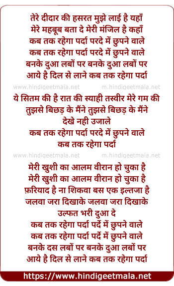 Lyrics of Kab Tak Rahega Parda Parde Me Chhupne Wale - कब तक रहेगा पर्दा परदे में छुपने वाले