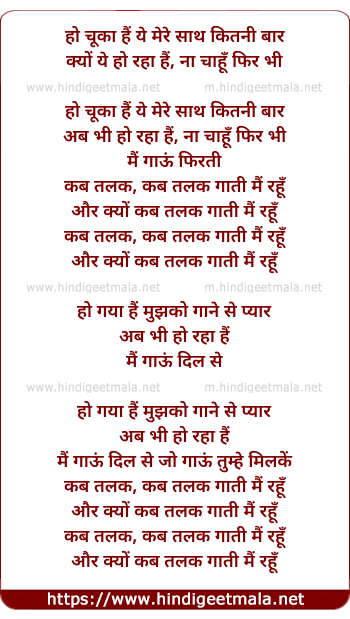 Lyrics of Kab Talak Gaati Main Rahoon - कब तलक गाती मैं रहूँ