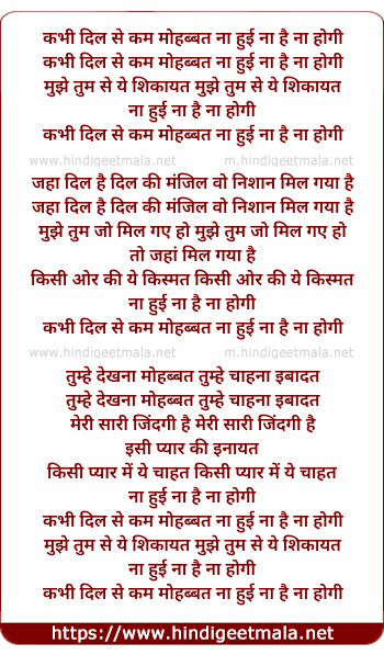 Lyrics of Kabhee Dil Se Kam - कभी दिल से कम