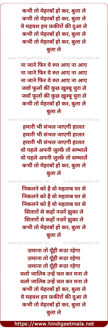 Lyrics of Kabhee Toh Maharaban Ho Kar Bula Le - कभी तो मेहरबाँ हो कर, बुला ले