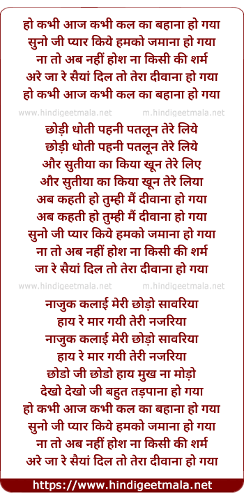 Lyrics of Kabhi Aaj Kabhi Kal Ka Bahana Ho Gaya - कभी आज कभी कल का बहाना हो गया
