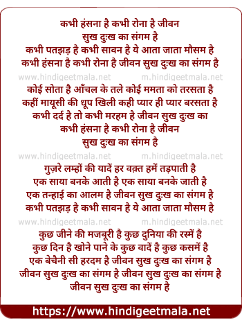 Lyrics of Kabhi Hasna Hai Kabhi Rona Hai Jivan - कभी हंसना है कभी रोना है जीवन