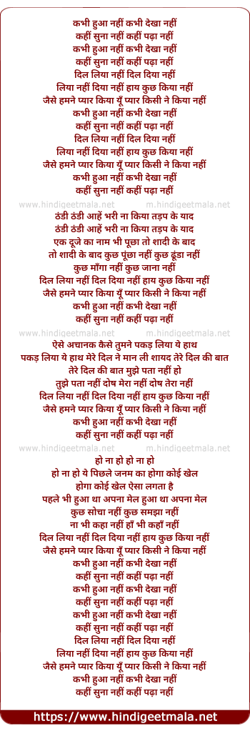 Lyrics of Kabhi Hua Nahi Kabhi Dekha Nahi - कभी हुआ नहीं कभी देखा नहीं