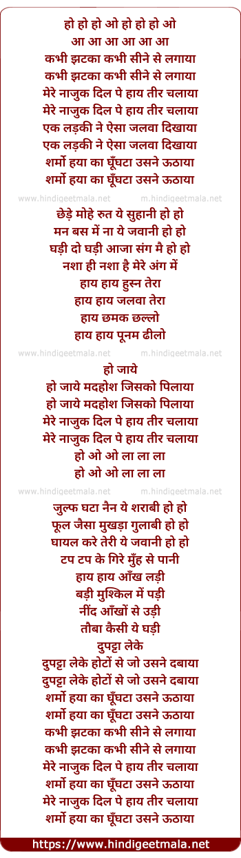 Lyrics of Kabhi Jhatka Kabhi Seene Se - कभी झटका कभी सीने से