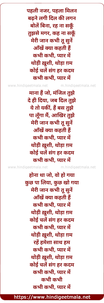 Lyrics of Kabhi Kabhi (Pheli Nazar) - पहली नजर, पहला मिलन
