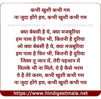 Lyrics of Kabhi Khushi Kabhie Gham (Male) - कभी खुशी कभी गम