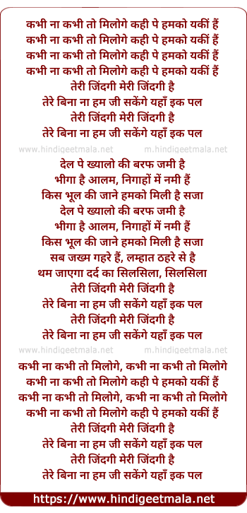 Lyrics of Kabhi Na Kabhi To Miloge - कभी ना कभी तो मिलोगे