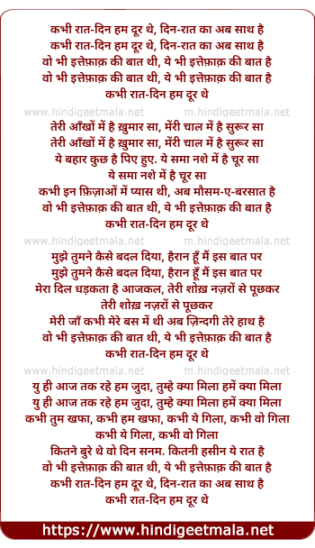 Lyrics of Kabhi Raat Din Hum Dur The - कभी रात-दिन हम दूर थे