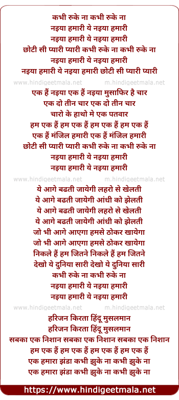 Poetic Translation - Lyrics of Kabhi Ruke Na - कभी रुके ना कभी रुके ना
