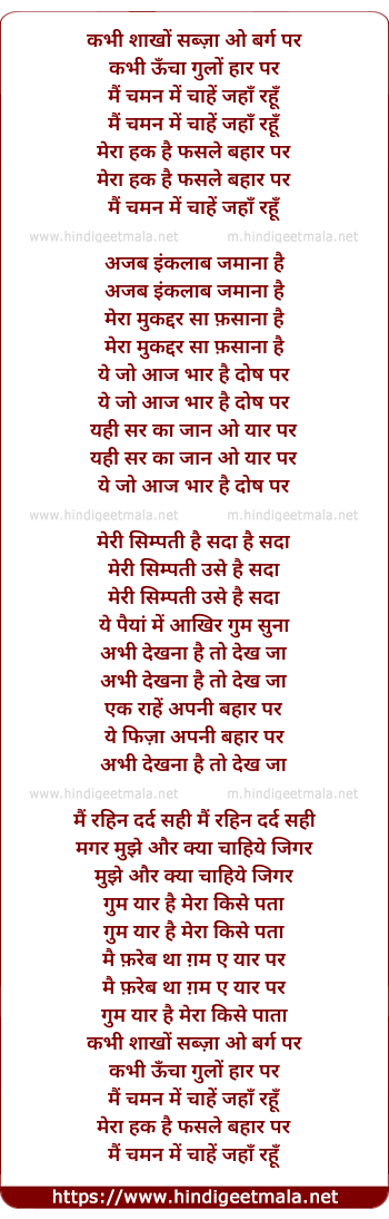 Lyrics of Kabhi Shakh-O-Sabza O Barg Par - कभी शाखों सब्ज़ा ओ बर्ग पर