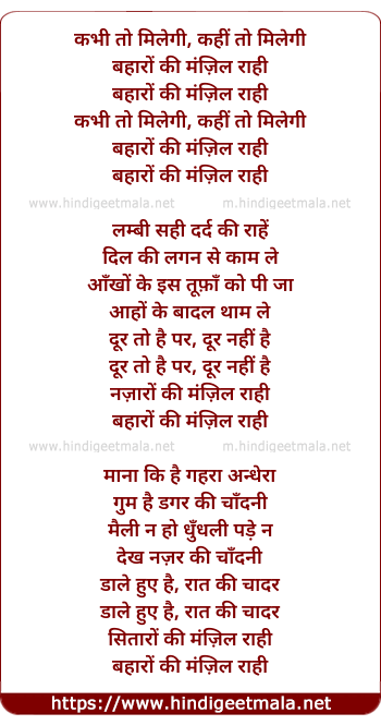 Lyrics of Kabhi To Milegi, Kahi To Milegi, Baharo Ki Manzil - कभी तो मिलेगी कहीं तो मिलेगी