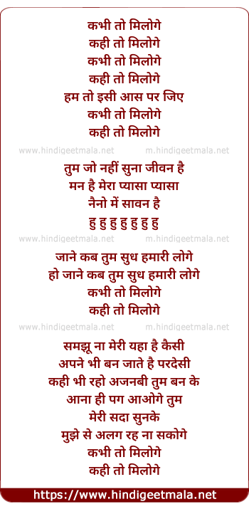 Lyrics of Kabhi To Milogi Kahi To Milogi