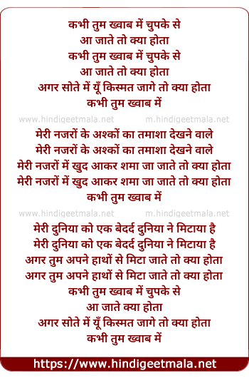 Lyrics of Kabhi Tum Khwab Me Chupke Se - कभी तुम ख्वाब में चुपके से